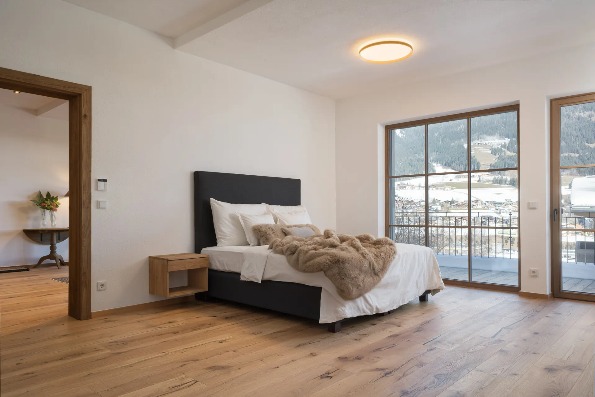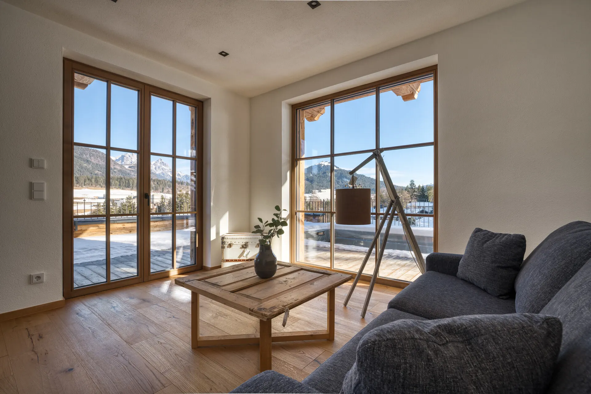 Von den weitläufigen Terrassen aus eröffnet sich ein Panoramablick auf die majestätische Tiroler Bergwelt – ein Platz zum Durchatmen, Ankommen und Bleiben.