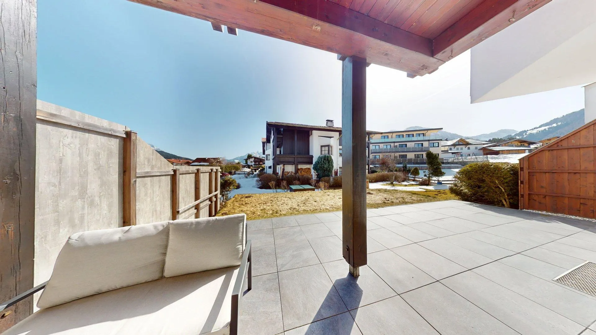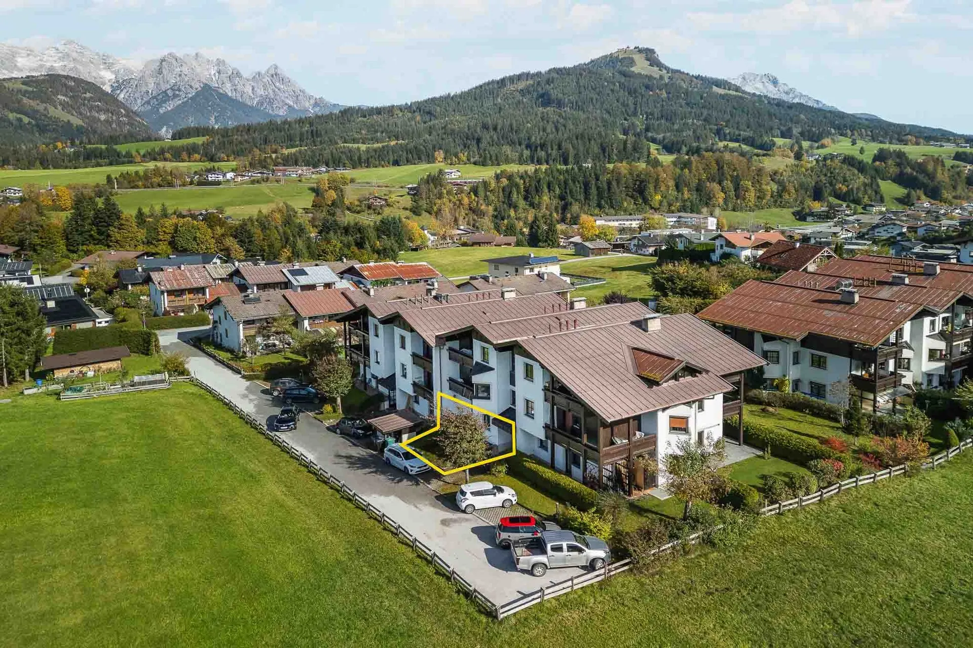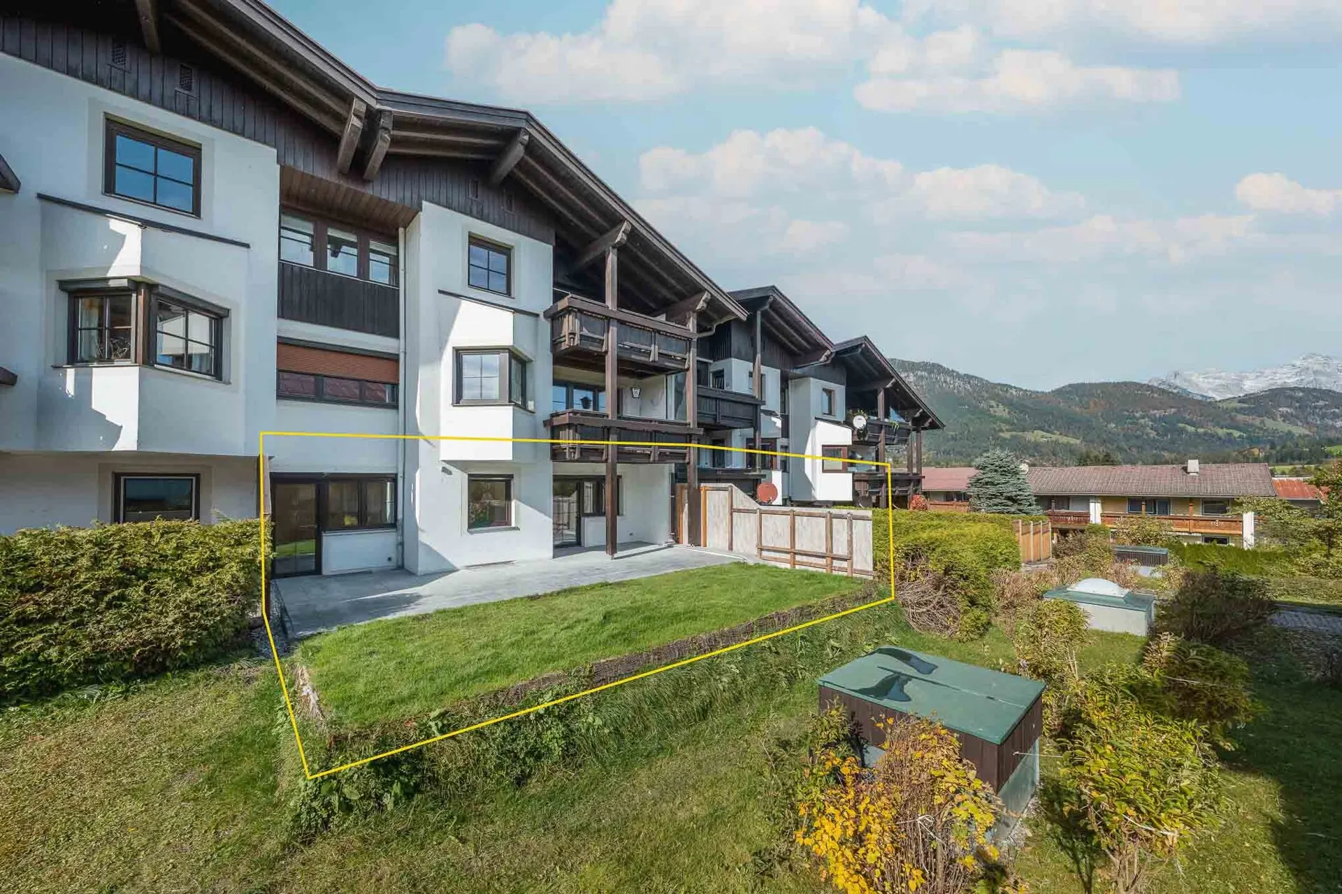 Die Wohnung befindet sich im Erdgeschoß eines gepflegten Mehrparteienhauses in Fieberbrunn.