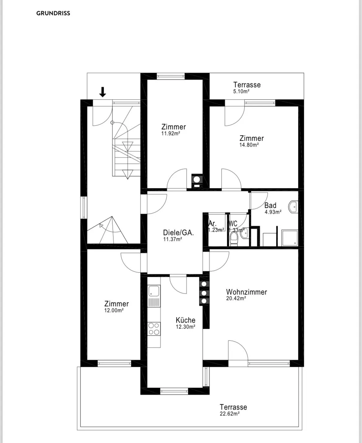 - Terrasse ca. 22,74, Grünfläche ca. 50,61