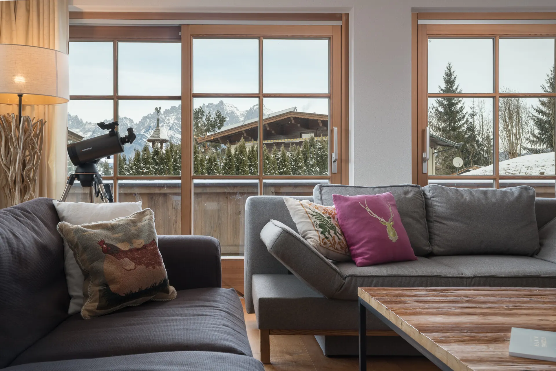 Die hochwertige Wohnung liegt in erhöhter Sonnen- und Ruhelage von Oberndorf in Tirol, nur wenige Fahrminuten von Kitzbühel entfernt.