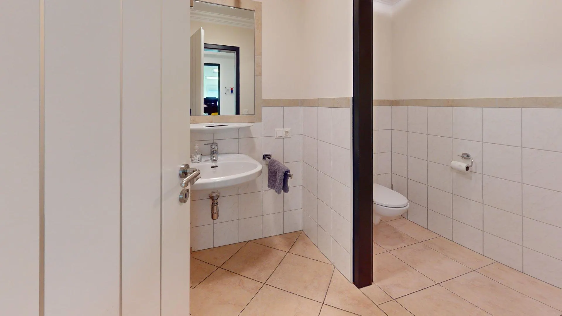 Die Immobilie hat 4 Büro- oder Praxisräume, eine kleine Küche, einen Waschraum mit separater Toilette und einen Abstellraum.