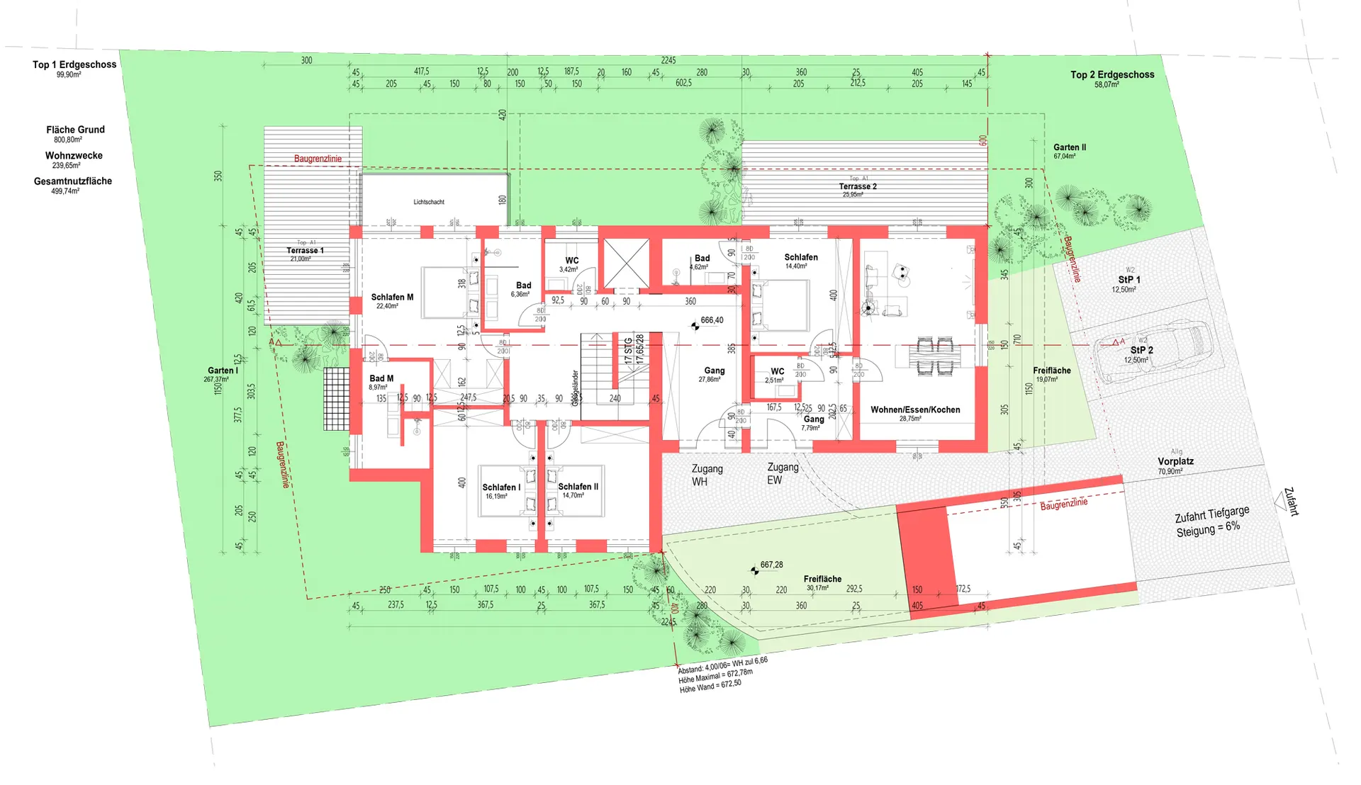 In einer sonnigen Lage von St. Johann in Tirol befindet sich dieses 800 m² große Grundstück mit Baugenehmigung für ein Einfamilienhaus, das eine Einliegerwohnung umfasst und eine beeindruckende Aussicht auf die umliegenden Berge bietet.