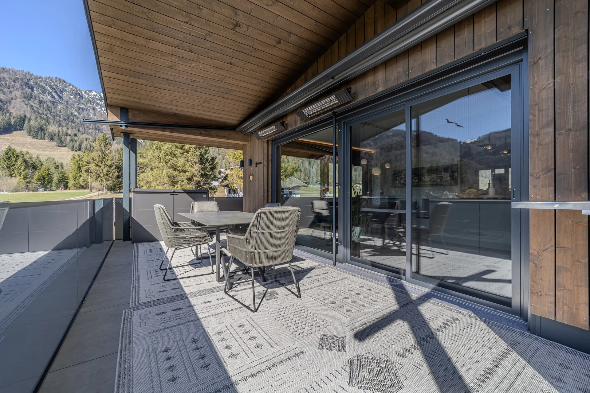 - große Terrassenflächen mit Beschattung und Windschutz